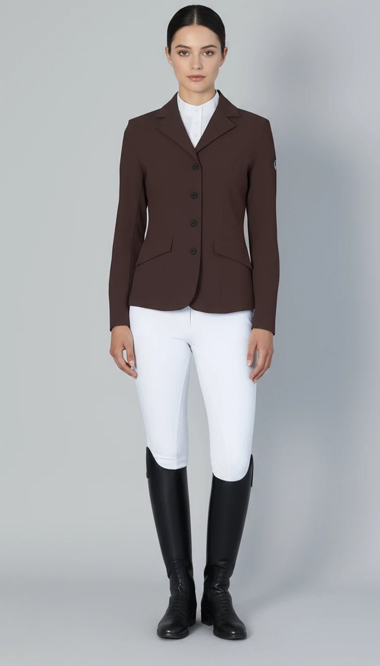 La giacca da concorso Monarchy Marrone di Equus Brand combina stile sofisticato e performance tecnica in un capo pensato per le amazzoni che ricercano comfort e raffinatezza in gara.