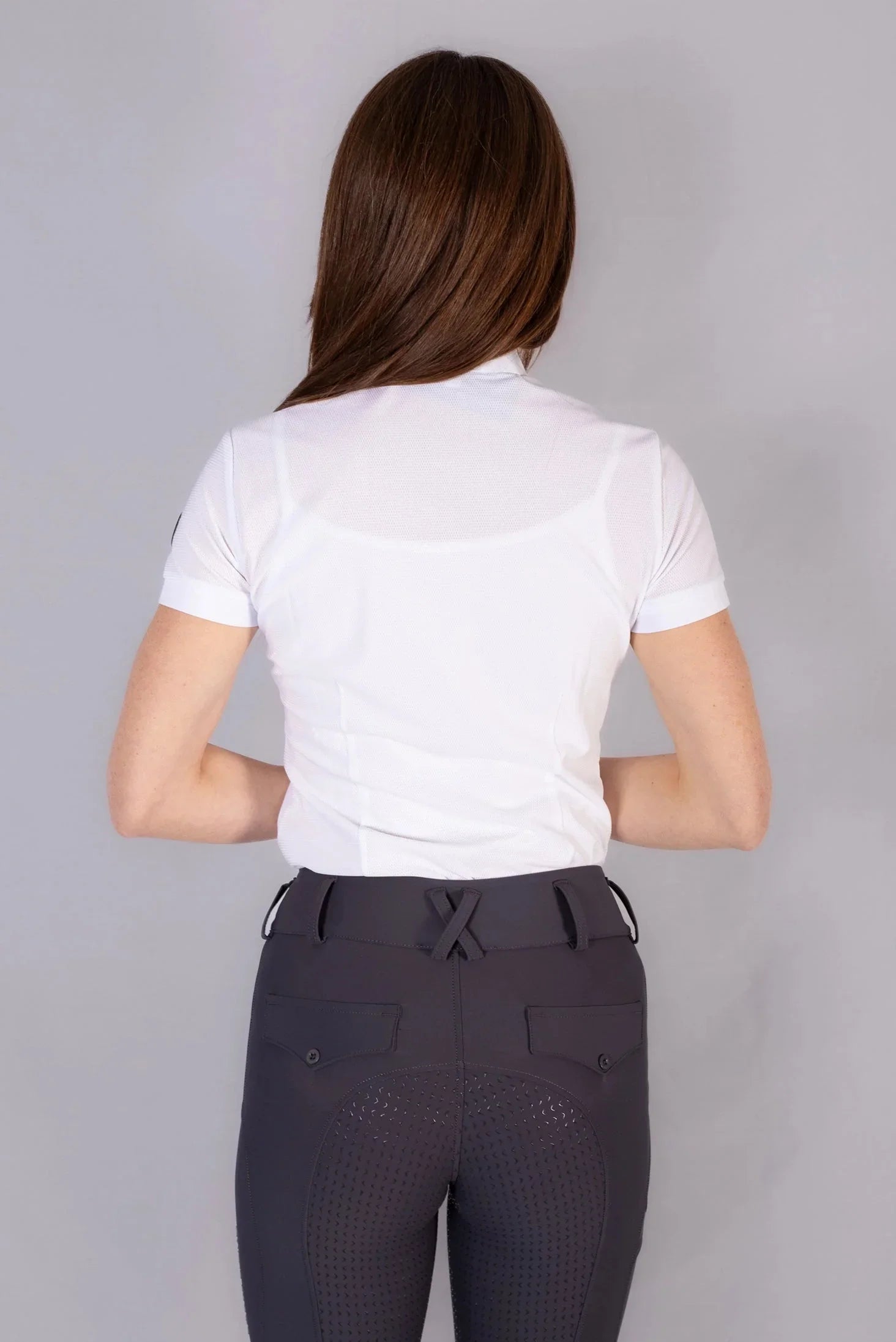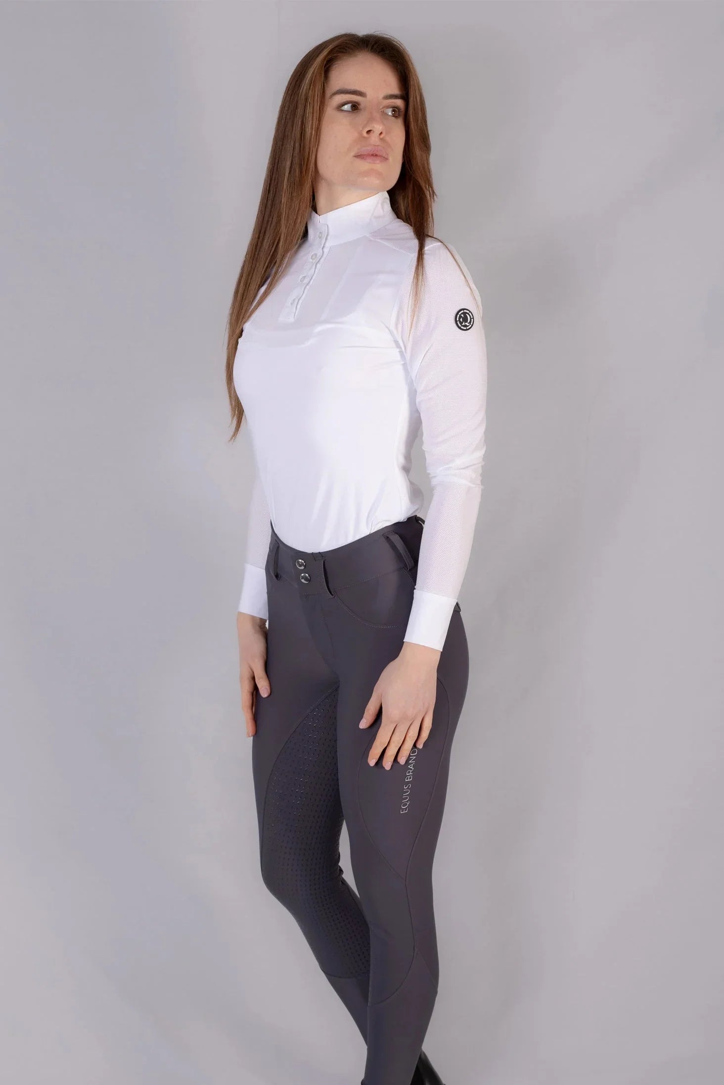 I leggings da concorso equitazione donna Lady Ola, nella variante grigio, combinano eleganza discreta e prestazioni. Il tessuto tecnico elasticizzato favorisce comfort e traspirazione; la tecnologia full grip antiscivolo assicura stabilità in sella.