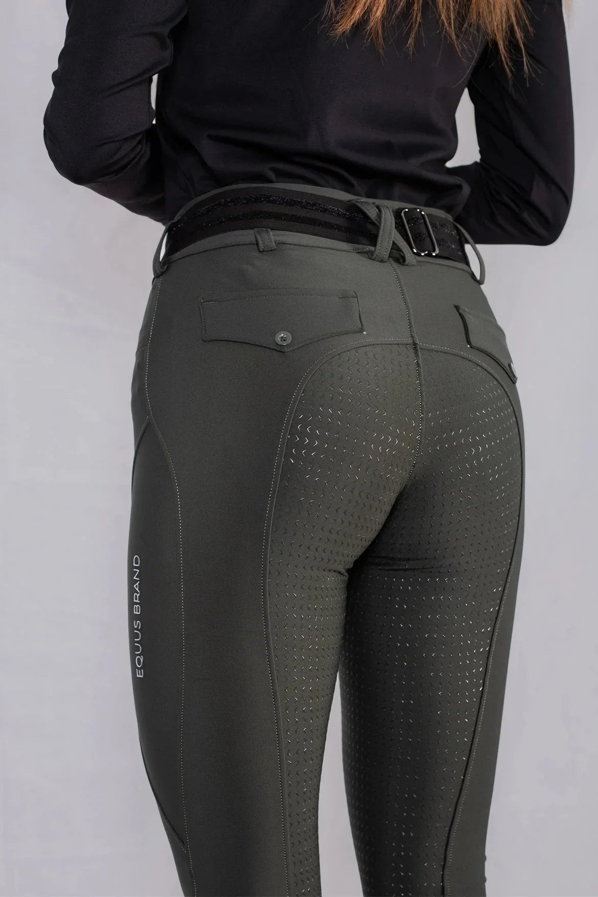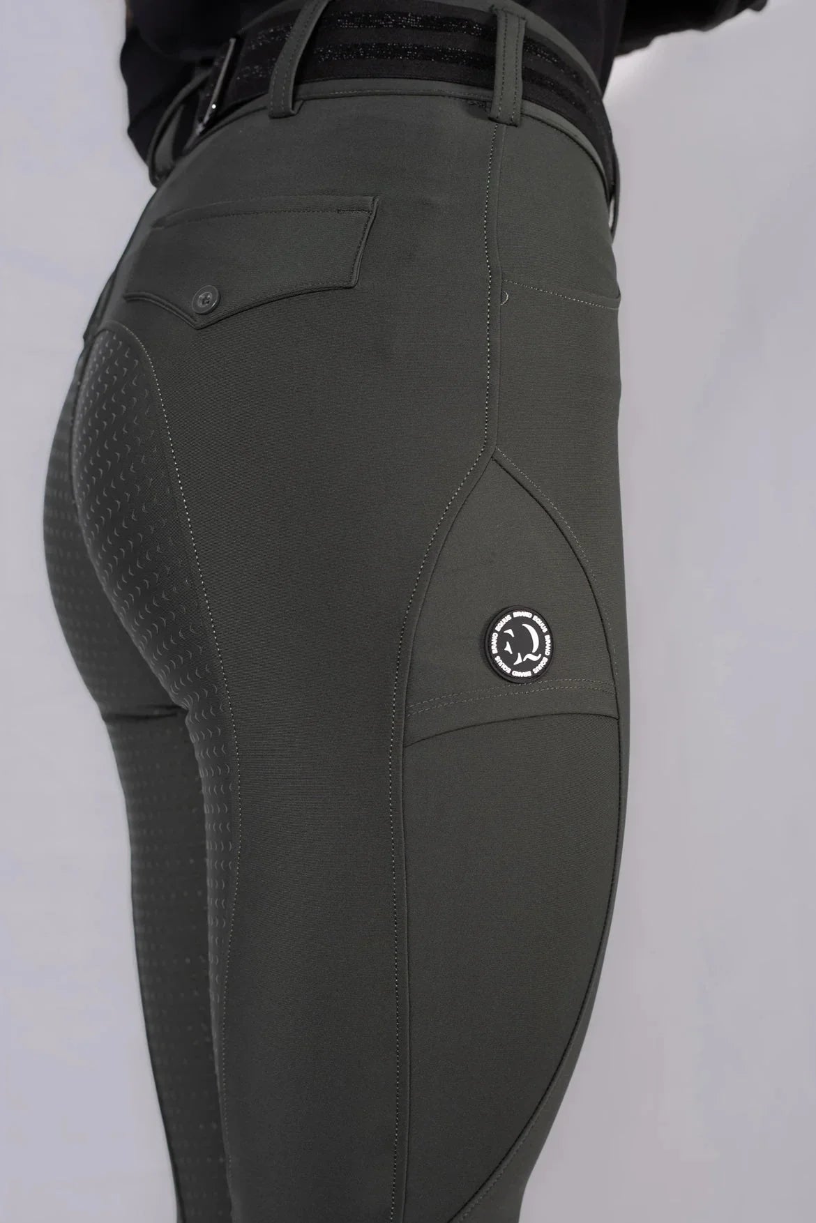 I leggings da concorso equitazione donna Lady Ola nella versione verde combinano stile, grip e performance. Il tessuto tecnico elasticizzato offre comfort e traspirazione, mentre il full grip antiscivolo garantisce stabilità anche nelle fasi dinamiche in sella.