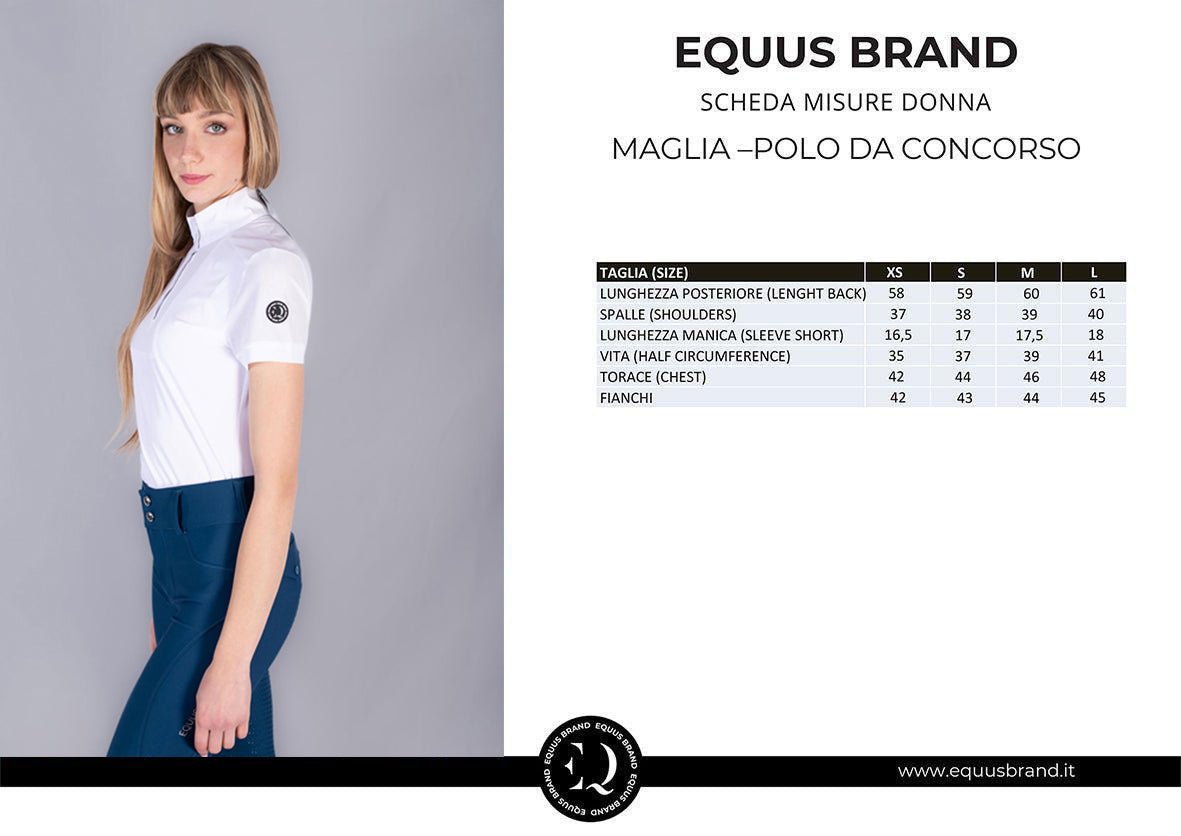 Perfetta sotto la giacca da concorso grazie al design sobrio e regolamentare, è ideale anche da sola nelle giornate calde o durante le sessioni di allenamento, garantendo traspirabilità, comfort e stile in ogni situazione.