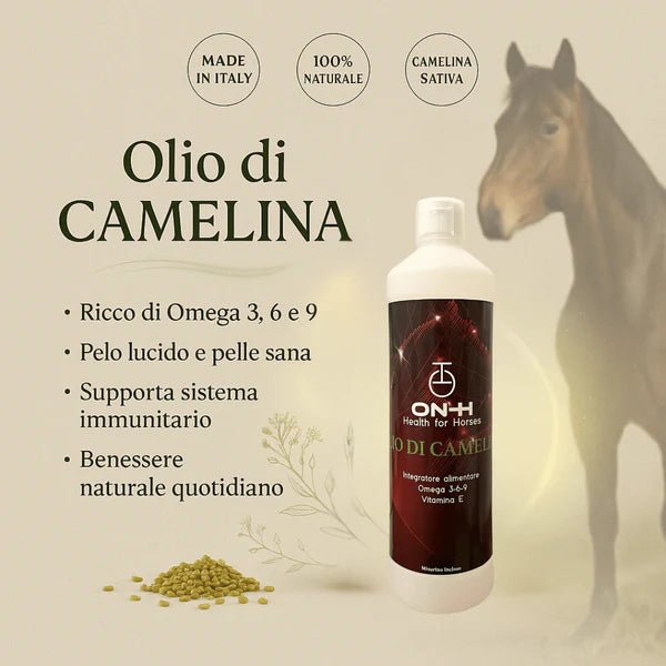 L’Olio di Camelina è un olio vegetale puro e naturale, ricco di acidi grassi omega-3, vitamina E e antiossidanti, indicato per migliorare salute del manto, pelle e supportare l’equilibrio articolare.